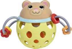Okrogla ropotuljica v dveh barvah, ki ponuja zabavo za malčke. Izberite med rumenim medvedkom ali modro pando.