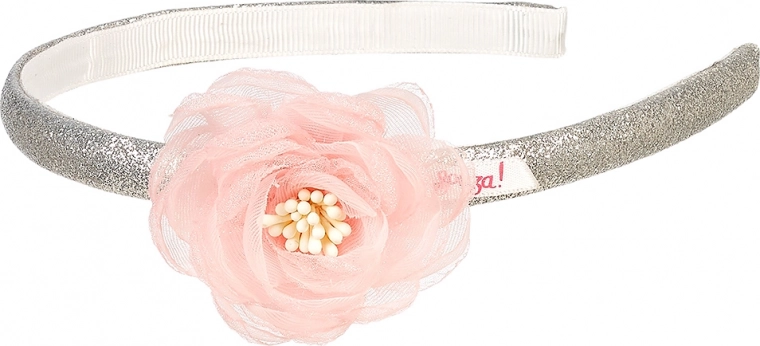 Ta elegantni naglavni trak je zasnovan tako, da ustreza potrebam malih gospodičen od 3. leta starosti. Popoln je za vsako slovesno priložnost ali za vsakodnevno nošenje. Naglavni trak je obrobljen z belo pentljo, kar zagotavlja udobje in dolgotrajno nošenje brez neprijetnega pritiska. Srebrni bleščav naglavnega traku je učinkovito dopolnjen z veliko rožnato cvetlico iz tila, ki pričeski doda kreativnost in ženstvenost: