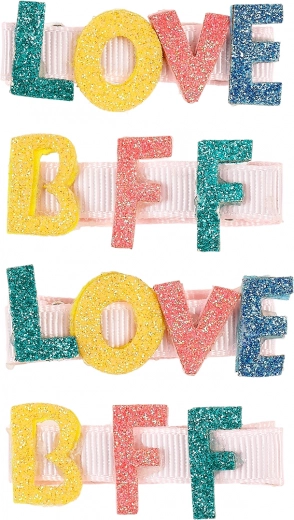 Set štirih edinstvenih sponk za lase, ki ustvarjajo stilski dodatek za vaše otroke. Vsaka sponka je opremljena z kovinskim delom, obloženim z grosgrain trakom, kar povečuje njeno trdnost in eleganco. Z nežnim nazobčanim oprijemom sponke ostanejo trdno v laseh in ne zdrsnejo.