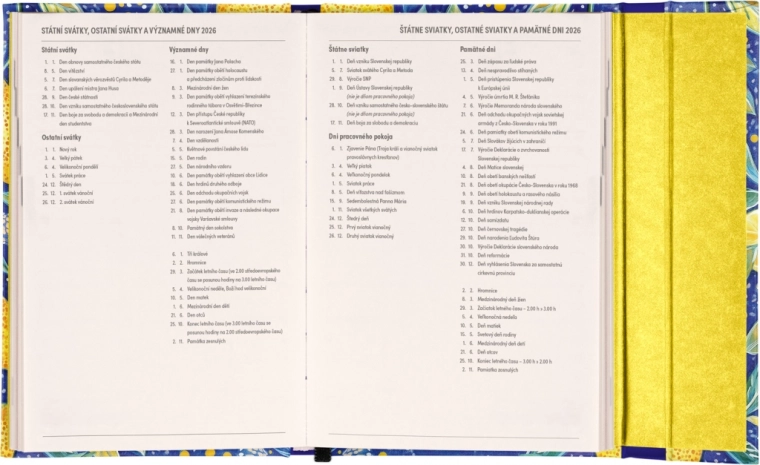 - Češki in slovaški koledar: Učinkovito zasnovan za načrtovanje v obeh jezikih.