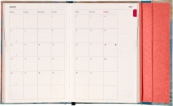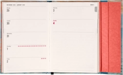 Za vse ljubitelje organizacije je ta dnevnik odlična izbira. S horizontalno postavitvijo na straneh v formatu teden na dveh straneh nudi dovolj prostora za zapiske. Poleg tega vključuje uporabne mesečne preglede za učinkovito načrtovanje počitnic in prostih dni.