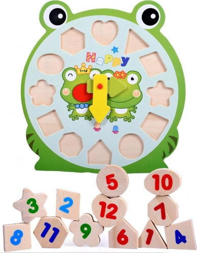 Lesena ura sestavljanka žabica: Pomagajte otrokom na zabaven način osvojiti branje časa s sestavljanjem. Idealno za razvoj motoričnih veščin.