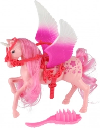 Ta ljubek samorog s krili ima dolgo grivo in rep, ki ju lahko otroci češejo in oblikujejo po svoji domišljiji. Zahvaljujoč priloženemu glavničku je skrb za grivo enostavna in zabavna. Igrača razvija fino motoriko, kreativnost in spodbuja pripovedno igro.