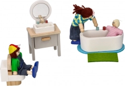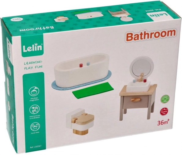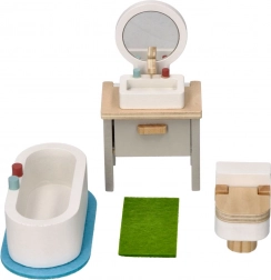 Otroški kopalniški set za hišico za punčke ponuja eleganten videz in pomaga razvijati otrokovo domišljijo pri igri. Set vključuje:
