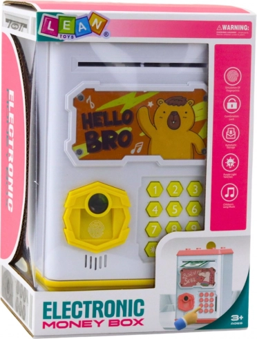 Elektronski sef z motivom kapibare je funkcionalna in izobraževalna igrača, ki spodbuja varčevanje in uči finančne odgovornosti. Zaradi modernega videza, rumene barve in vesele grafike »Hello Bro« pritegne pozornost otroka in motivira k rednemu shranjevanju denarja.