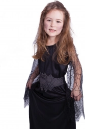 Spremenite svojega otroka v očarljivo čarovnico s tem črnim kostumom. Kostum je sestavljen iz obleke z okrasnimi prosojnimi rokavi, ki imajo motiv pajčevin za avtentičen čarovniški videz. Popoln za zabave za noč čarovnic ali tematska praznovanja.