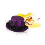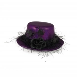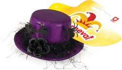 Priskrbite si ta stajliš mini klobuček, ki doda pridih elegance in izvirnosti. Sveža vijolična barva v kombinaciji s črnim trakom in cvetom naredi ta dodatek idealen za posebne priložnosti ali tematske zabave.