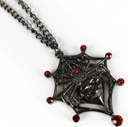 - Ogrlica z natančno oblikovanim pajkom, ki simbolizira skrivnostnost in temo.