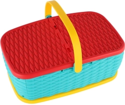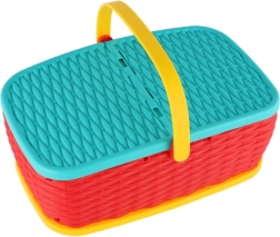 Odkrijte piknik zabavo z pisanim kompletom, ki otroke skozi igro uči osnov priprave hrane. Košara z ročaji je lahka, kompaktna in vse lepo drži skupaj – idealna za dom in potovanja.