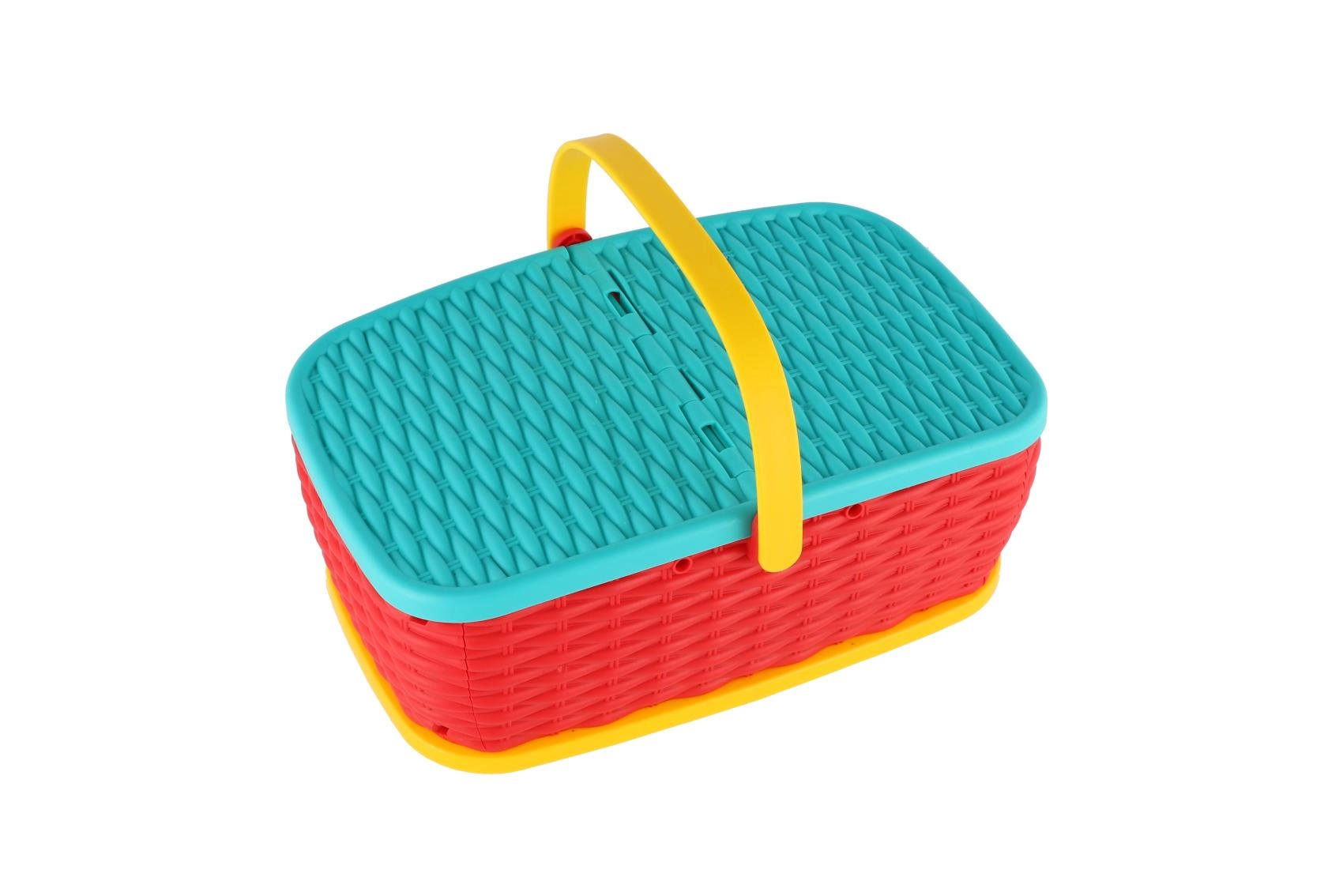Lahka košara s pokrovom in preklopnim ročajem ohrani vse dele skupaj. Zlahka jo odnesete na piknik, k babici ali v otroško sobo.