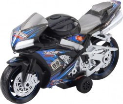 Ta črno-modri motor je izdelan iz visokokakovostne plastike, je odporen proti poškodbam in ima trdna, široka kolesa s stabilno oporo, kar zagotavlja varno in udobno igro na različnih površinah. Svetlobne in zvočne učinke je mogoče aktivirati s pritiskom na gumb – realistični zvoki motorja in svetlobni bliski pritegnejo otroke in igri dodajo realističen pridih.