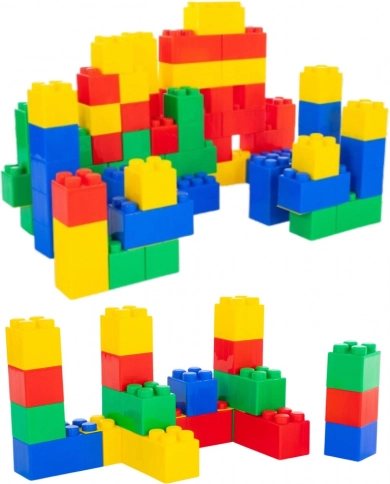 Kocke so na voljo v kombinaciji živih, privlačnih barv: rdeča, modra, zelena in rumena, ki otrokom pomagajo ustvarjati privlačne in barvite konstrukcije.