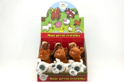 Ob pritisku na trebušček živalica odda avtentičen zvok – otroci zlahka spoznajo, kako mijavka mačka, laja pes ali rezgeta konj.