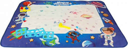 Ta vodna slikarska podloga ponuja varen in zabaven način za razvoj ustvarjalnosti vaših otrok. S podlogo velikosti 90 x 120 cm lahko otroci ustvarjajo vesoljske prizore in se zabavajo s priloženimi orodji brez nereda. Del kompleta so tudi vodni markerji, štampiljke in šablone, ki spodbujajo njihovo domišljijo.