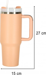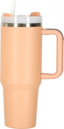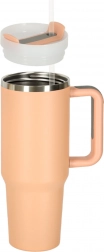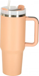 Vzdržljiv dizajn iz kombinacije nerjavnega jekla in plastike zagotavlja dolgo življenjsko dobo in odpornost proti poškodbam. Ročaj omogoča varno prenašanje, priložena je tudi slamica za udobno pitje brez odstranjevanja pokrovčka. Idealen dar za navdušene popotnike in preudarne uporabnike.