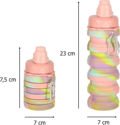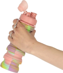 Ta športna steklenica je odličen spremljevalec za vaš aktiven življenjski slog. Ponaša se z nastavljivo prostornino zahvaljujoč zložljivi konstrukciji, ki omogoča polnjenje od 250 ml do 500 ml. Ima zapiralni ustnik, ki zagotavlja udobno pitje brez polivanja, njen privlačen dizajn v kombinaciji rožnate, rumene in vijolične barve pa vas bo motiviral k rednemu pitju.