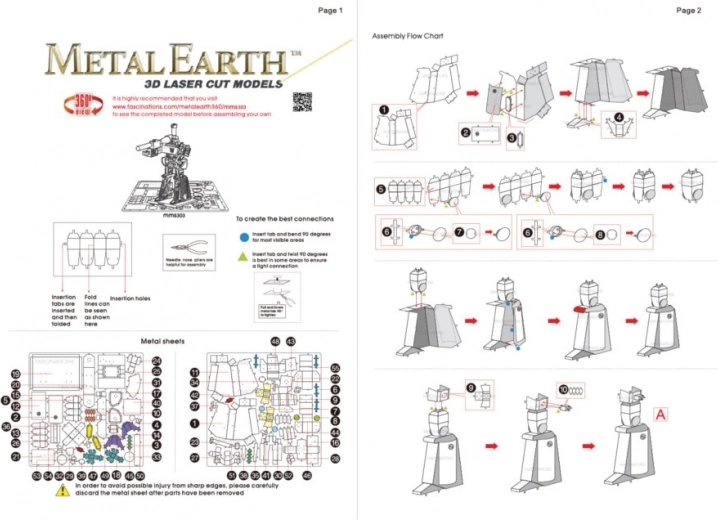 Modeli Metal Earth niso le privlačne dekoracije za dom, pisarno ali šolo, temveč tudi miniature, ki očarajo z avtentičnim videzom. Paket vsebuje 2 kovinski ploščici in navodila za uporabo. Potrebna orodja niso priložena.