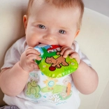 Predstavljamo mehko piskajočo blazinico »Moje prve živalice«, zasnovano za najmlajše. Ob stisku odda nežen piskajoč zvok, ki otroke zabava ter hkrati razvija njihovo slušno zaznavanje in fino motoriko. Zaradi kompaktnih mer se odlično prilega vozičku, avtosedežu in posteljici.