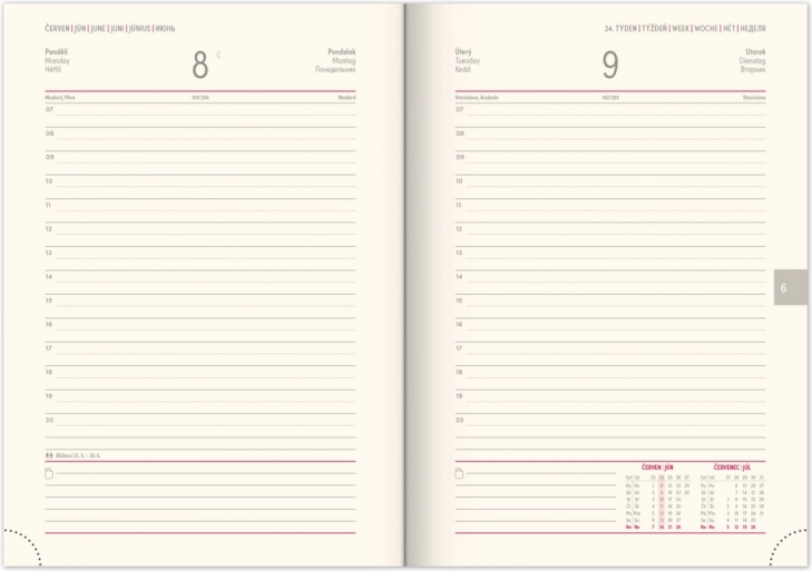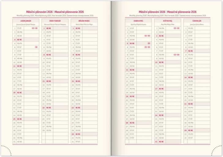 S češko-slovaškim koledarjem in dodatnimi jeziki, kot so angleščina, nemščina, madžarščina in ruščina, je ta dnevnik nepogrešljiv spremljevalec za poslovne in zasebne obveznosti.