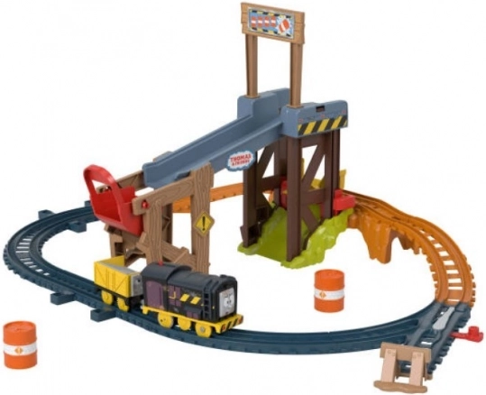 Igralni set z motivom nakladanja, ki vključuje like iz pravljice Tomaž in prijatelji: baterijsko lokomotivo Diesel in Vagon. Premaknite stikalo na strehi Diesla, da se odpravi na pot po progi, kjer lahko naklada sode in jih prepelje nazaj do dvigala in rampe.