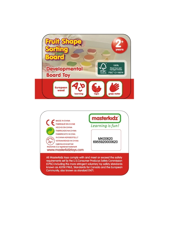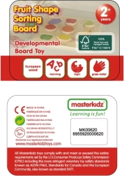 Razvrščevalnik oblik Barvno sadje znamke Masterkidz je odlična lesena igrača za otroke z več nameni. Ne le da poskrbi za zabavo, temveč tudi omogoča učenje poimenovanja sadja in spodbuja uživanje sadja. Otrok mora ujemati posamezne plodove z ustreznimi odprtinami na leseni plošči, kar zahteva zbranost in analizo oblik. Ta dejavnost prispeva tudi k razvoju koordinacijskih sposobnosti.