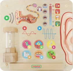 Izobraževalne table Masterkidz pomagajo otrokom razvijati različne sposobnosti hkrati. Ta tabla uči otroke skozi zanimive teme o delovanju v družbi in spoznavanju sveta. Posebne naloge, kot je dotikanje scen in poslušanje ustreznih zvokov, so ključne.