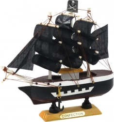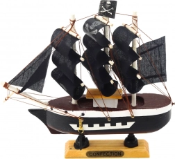 Svet piratov bo zaživel v vašem domu s tem dekorativnim modelom piratske ladje. Ta majhen, a podrobno dodelan model spominja na slavne korsarske ladje iz časa Zlate dobe piratstva. S svojo trojambornico, črnimi jadri in značilno lobanjo na zastavi deluje dramatično.