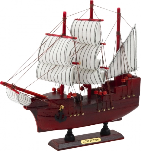 Svež model trojambornice ponuja eleganco klasičnega pomorskega plovila iz dobe velikih odkritij. Skrbno je izdelan iz lesa in ročno dodelan, kar zagotavlja visoko kakovost in natančno obdelavo. Celoten model stoji na lesenem podstavku s ploščico in je pripravljen za impresivno predstavitev.