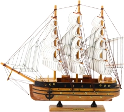Model je odlična izbira za zbiratelje zgodovinskih modelov ali za tiste, ki iščejo stilski element za interier v vintage ali klasičnem duhu. Vsak detajl je skrbno izdelan, vključno s črnimi in zlatimi poudarki na trupu ladje. Ročno vezano ladijsko vrvovje doda celotni enoti pristnost in eleganco.