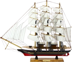 Ladja je nameščena na elegantnem podstavku, kar poudarja njen dekorativni in zbirateljski značaj. Odlično se poda kot okras v dnevni sobi, pisarni ali prostoru v navtičnem slogu. Popolno darilo za ljubitelje pomorstva, zgodovine in modelov plovil.