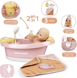 Uživajte v realistnem kopanju punčk s kopeljo Smoby Baby Nurse, opremljeno z elektronsko prho in mehurčkasto funkcijo z lučko. Dovolj je pritisniti gumb in voda začne teči iz samodezne pršne glave, kar nudi zabavo in občutek prave kopeli.