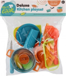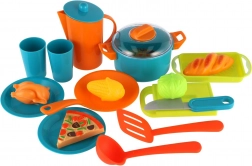Ta praktičen otroški set posode je idealen za vse male kuharice in kuharje. Zahvaljujoč lahkim plastičnim elementom je varen in enostaven za uporabo. Otroci lahko posnemajo dejavnosti odraslih in razvijajo veščine pri skupni igri.