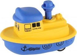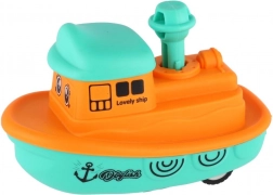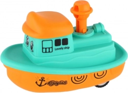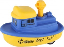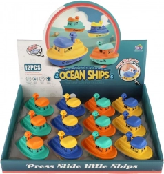 Pritisni dimnik in čolniček se zahvaljujoč vztrajniku gladko zažene. Odlična interaktivna zabava brez baterij.