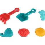 Lopatka, grabljice in modelčki otrokom zagotovijo popolno opremo za ustvarjanje potičk in gradov na pesku in ob vodi.