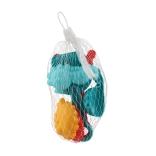 Ta kompaktni komplet za pesek spodbuja otroško domišljijo in fino motoriko. Zaradi lahkega in trpežnega plastika dobro leži v malih rokah in je idealen za prve igre v peskovniku. Praktična mrežica ohranja vse dele skupaj ter olajša prenašanje in sušenje po igri ob vodi.