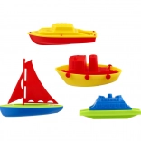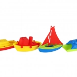 Ta praktičen komplet vsebuje štiri plastične čolničke v različnih oblikah in barvah, vključno z jadrnico in motornimi čolni. Čolnički so lahki, trpežni in dobro sedejo v majhne otroške roke. Zaradi plavajoče zasnove so popolni za kad in otroški bazenček.