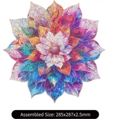 Unikatna in pisana lesena sestavljanka združuje kakovostno izdelavo z umetniško vrednostjo. Vsak košček ima edinstveno obliko, kot na primer metulj ali cvet. Zahvaljujoč natančnemu laserskemu izrezu se koščki popolno prilegajo, kar olajša sestavljanje in rokovanje. Sestavljanka je večkrat uporabna, idealna za zabavo z družino.