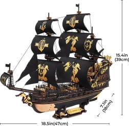 Detajlni model vojne ladje s črno-zlatimi jadri in bogatimi okraski. Vsak detajl je skrbno izdelan, da izstopa in vašemu modelu doda realističen videz.