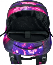 BAAGL šolski nahrbtnik Skate max Galaxy je idealen za učence in dijake z višino med 155 in 185 cm. Hrbet nahrbtnika ima nastavljiv hrbtni sistem, ki omogoča nastavitve na štiri različne velikosti. Zahvaljujoč materialu iz recikliranega, vodoodpornega tekstila in odsevnimi elementi je nahrbtnik zelo varen in trpežen.