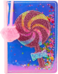 Beležka s holografskim ovitkom in bleščičasto liziko, obdano s premičnimi konfeti v različnih oblikah in barvah, je izrazita in vesela. Sprednji ovitek pritegne pozornost zaradi svoje holografske površine, zadnji del pa je prijeten na dotik zahvaljujoč plišastemu materialu.