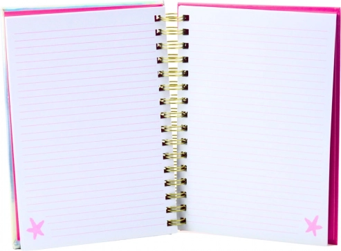 Notranjost vsebuje 90 listov z rožnatimi črtami, kar je idealno za šolske zapiske, ustvarjalno pisanje ali vodenje dnevnika. Močna spiralna vezava olajša odpiranje in obračanje listov. Format A5 je praktičen za vsakodnevno uporabo – v šoli, doma ali v službi.