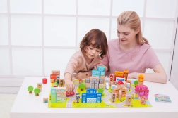 Z različnimi zgradbami in figurami se otroci lahko naučijo o poklicih in mestni infrastrukturi.