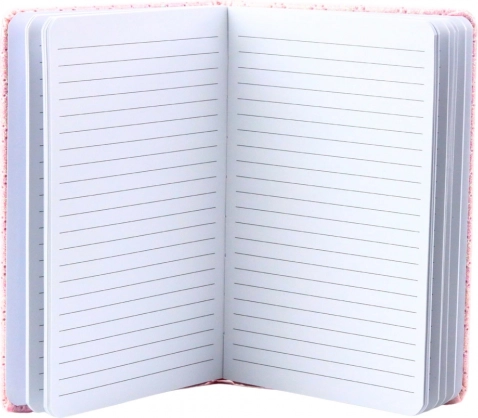 Zelo priročen in stilski zvezek z brokatnim rožnatim ovitkom je idealen za vsakodnevno pisanje zapiskov in načrtovanje. Ovit z laminirano površino zagotavlja, da brokat ostane na mestu tudi pri intenzivni uporabi. Raznobarvni našitki zvezku dodajo moderen videz.