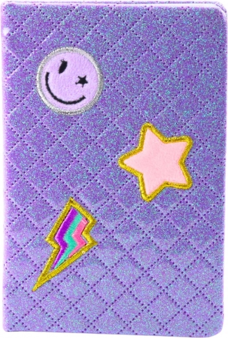 - Barvni našitki v obliki zvezde, nasmejanega obraza in strele dodajo beležniku sodoben videz