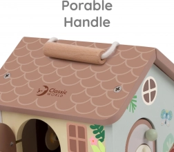 Hišica je zasnovana z ročajem, ki otrokom omogoča enostavno prenášanje, idealno za igro doma ali na poti.