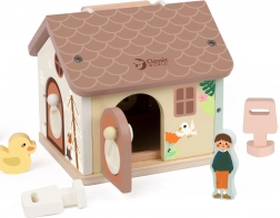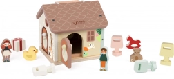 Ta hišica prinaša zabavo z 11 kosi za vstavljanje, vključno z edinstvenimi figuricami in živalmi, ki spodbujajo otroško ustvarjalnost.