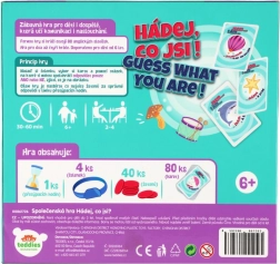 Zabavna družinska igra, ki nasmeje otroke in odrasle. Igralci si nadenejo naglavni trak s kartico in z vprašanji z odgovori DA/NE ugotavljajo, kdo ali kaj so. Igra spodbuja logično razmišljanje, komunikacijo in pomaga osvojiti 80 angleških besed. Idealna za družinske večere in srečanja s prijatelji.