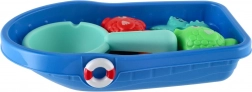Ta barvit vodni komplet prinaša otrokom veliko smeha in učenja. Trdna plastična ladjica plava na gladini, cedilo z odprtinami je odlična izbira za nalivanje in cejenje vode, ljubke morske živalice pa vabijo k lovljenju in razvrščanju po oblikah in barvah.
