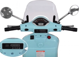 Malim voznikom bo všeč eleganten videz VESPA s sprednjim ščitnikom, vzvratnimi ogledali in funkcionalnimi detajli. Stabilizacijska kolesca pomagajo ohranjati ravnotežje, zato je skiro primeren tudi za začetnike. Pogon zagotavljata dva zmogljiva motorja 12 V / 30 W, napajana z dvojico baterij 6 V za daljšo vožnjo.