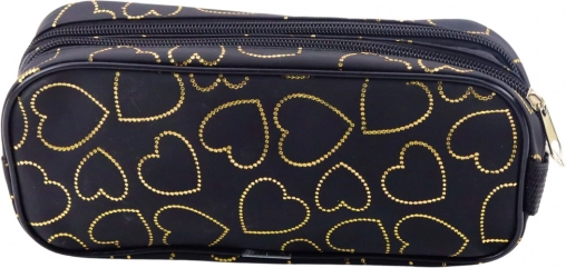 Črna peresnica z zlatimi srčki je popoln dodatek za vsakogar, ki išče slog in funkcionalnost v enem. Dva ločena predelka omogočata enostavno razporeditev vsebine in olajšata vsakodnevno uporabo. Ta peresnica je idealna za shranjevanje ne le vaših peres in svinčnikov, temveč tudi ravnil, radirk, šilčnikov in označevalcev.
